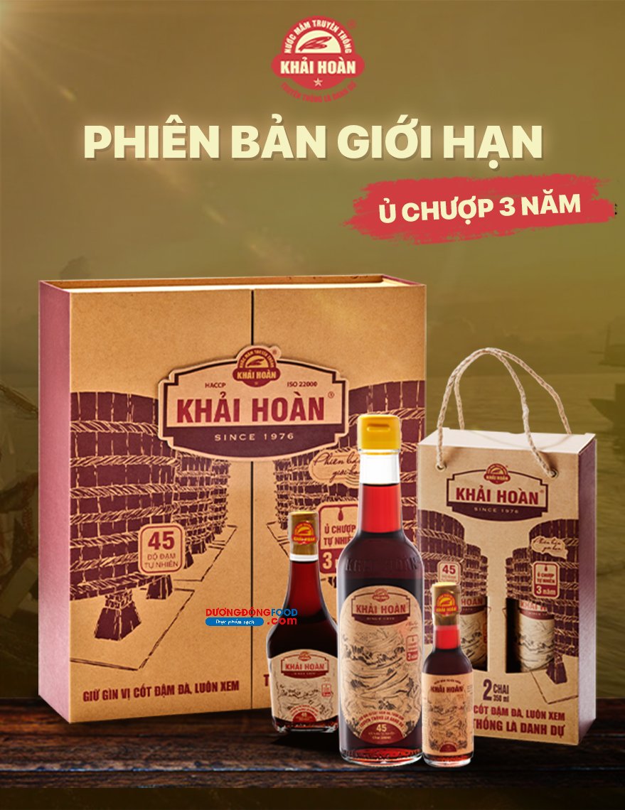 Nước mắm Khải Hoàn 45 độ đạm phiên bản giới hạn (limited) là dòng sản phẩm cao cấp với thời gian ủ chượp tự nhiên 36 tháng.